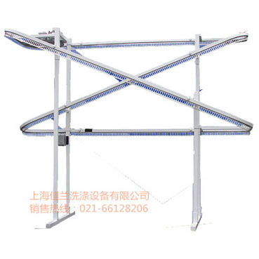 ● 洗涤房设备取衣线具有省电、低噪音、任意地段均可摆放,多种形状可供选择等优点,是服装洗涤公司不可缺少的设备,是宾馆洗衣房、酒店洗衣房、工业洗涤房的理想工具。